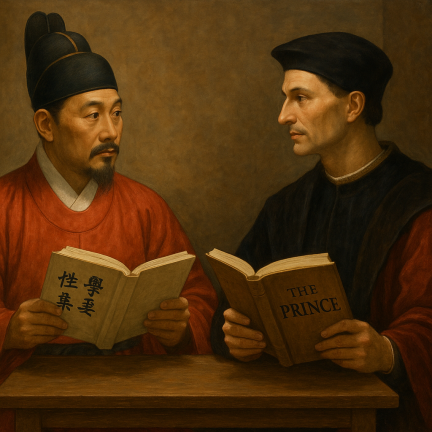 『성학집요』와 『군주론』은 서로 정반대의 철학을 담고 있는 듯 보인다. 전자는 군주의 도덕적 성숙과 천명에의 순응을 강조하고, 후자는 권력 유지의 기술과 인간 본성의 냉철한 이해를 기초로 한다. 그러나 이 둘은 “군주의 책임은 무엇인가?”라는 동일한 질문에 대한 서로 다른 답일 수 있다.